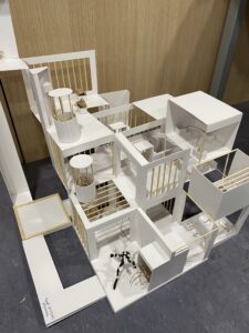 Axonia is a speculative architectural project that explores how invisible bonds can be translated into spatial form. Inspired by the conceptual framework of Ersilia, the project focuses on relationships rather than isolated objects, proposing an urban structure defined by connections, continuity, and transformation. Architecture in Axonia is not conceived as a closed system but as an open network that allows bonds to become visible and spatially legible.The architectural language is intentionally minimal and geometric. Solid white surfaces provide structural clarity, while open frames and voids establish permeability across the project. The relationship between solid and void plays a central role, enabling spatial continuity and visual depth. Thin linear elements connect platforms and volumes, acting as mediators between different levels and reinforcing the idea of an interconnected architectural system.A key component of the project is Tether, an observational creature embedded within the architectural structure. Defined by its multiple eyes and ears, Tether represents constant perception and awareness. This observational quality directly influences the spatial organization of Axonia. Rather than relying on fully enclosed interiors, the city is primarily composed of open and semi-open spaces. Transitional zones, platforms, and layered structures allow uninterrupted visual connections and promote spatial transparency throughout the project.Enclosure in Axonia is therefore selective and controlled. Instead of conventional interior spaces, the project emphasizes thresholds, overlaps, and intermediate conditions. Vertical and horizontal layers intersect to create a dynamic spatial experience, where architecture supports movement, observation, and adaptation.Ultimately, Axonia proposes an alternative architectural approach in which structure, perception, and connection are inseparable. Through the presence of Tether and the dominance of semi-open spatial conditions, the project presents a city that remains flexible, observable, and continuously shaped by the bonds that define it.