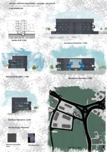 The project consists of two residential blocks organized around shared circulation and collective spaces. While the lower and middle floors function primarily as residential units, the upper level is designed as an art gallery open to both residents and visitors. This gallery space hosts hologram installations, digital artworks, and live painting activities, transforming the building into a constantly changing visual interface. In this way, the building becomes not only a place to live, but also a platform for artistic expression and public interaction.