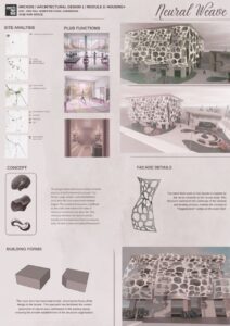 A project named “Neural Weave” focuses on a mixed-use development project involving housing and medical facilities. This project focuses on the healing process associated with the human body, specifically in today’s urban environment. As part of identifying a project related to determining the site, this project has ensured that facilities like educational buildings, worship buildings, and major roads are available, but very few health and rehabilitation facilities to offer for the housing density in this region. Therefore, this project considers architectural designs focused on addressing the need to provide experiences for the body and mind to renew itself in an attempt to address this shortage in this region. Based on information related to the noise map in this region, the café, restaurant, and shopping complex that requires public contribution is placed parallel to a major road causing noise.