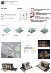 “Social Interface” is a mixed-use architectural proposal located in Kayseri, designed to challenge the isolation of traditional student dormitories. The project redefines student living not merely as accommodation, but as a dynamic ecosystem of production, marketing, and community interaction. The massing strategy is defined by two distinct volumes: the ground-level “Active Arm” and the elevated “Housing Arm,” which together form a U-shaped configuration wrapping around a protected central courtyard.